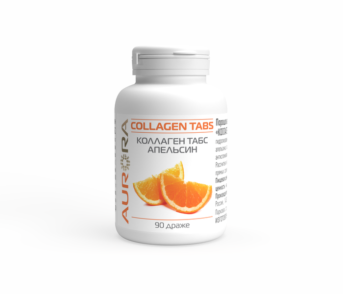 • Коллаген Табс Апельсин (Collagen Tabs)– добавки с коллагеном помогают поддерживать работу различных систем и структур организма. Морской коллаген полезен для сердца и костей, мышц и сухожилий. Возвращает молодость коже, улучшает состояние слизистой кишечника, облегчает боль в суставах. Это хороший источник белка.